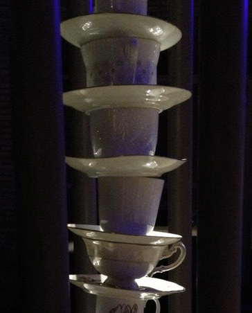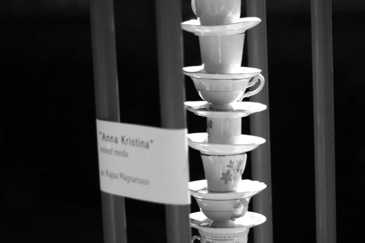 En slags ryggrad av porslin, gjord av kaffekoppar, vickar och klickar och ger ifrån sig ljud. Det är ett vardagligt ljud, något vi kanske ibland tar för givet. Verket Anna Kristina har fått sitt namn efter min farmor, och representerar styrkan som krävs för att vara känslig, och kraften som ligger i en inneboende omtänksamhet.