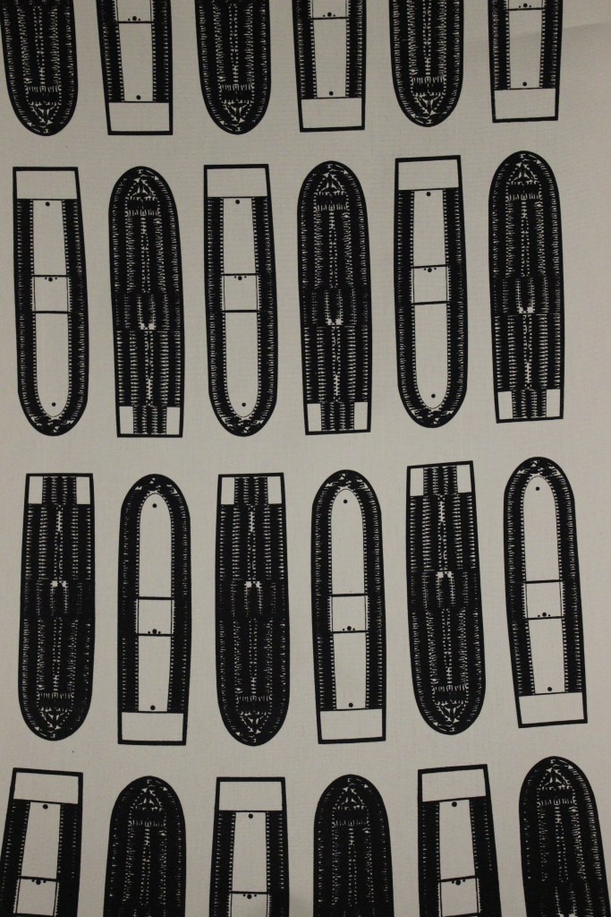 The print on the chairs come from an illustration made by Carl Bernard Wadström and shows how they used to pack the British slave ship, it is very possible that Swedish registered ships were loaded in the same way.
