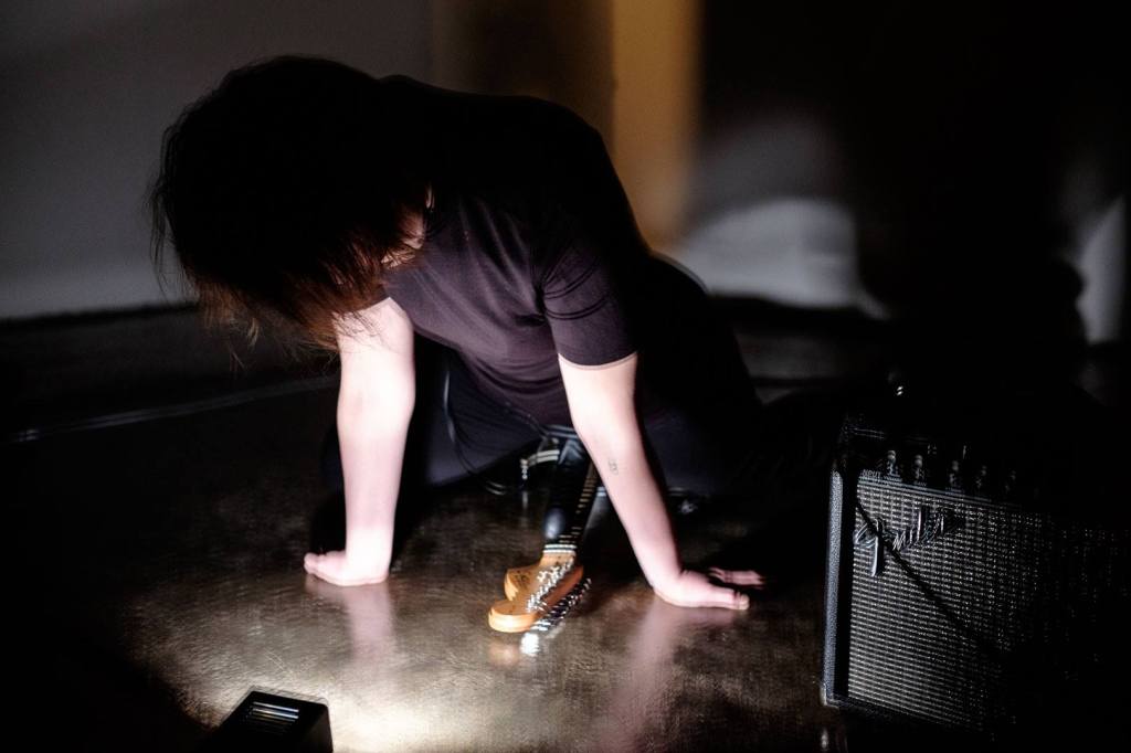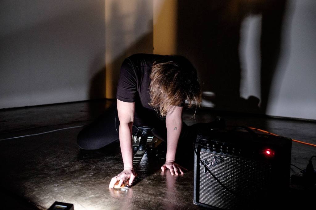 “ Standing, rubbing, humping, lying down. Yes, that is how we see Magnarsson in the documentation of the performance work Strap-On and Electric Guitar. Wearing a strap-on with a built-in vibrator – a type of loose penis that is fastened with straps – Magnarsson tries with different techniques to play her electric guitar. The work is intimate; loaded with sex. A solo about self-love with a large dose of focused overheating, and behind it a gentle tactlessness.